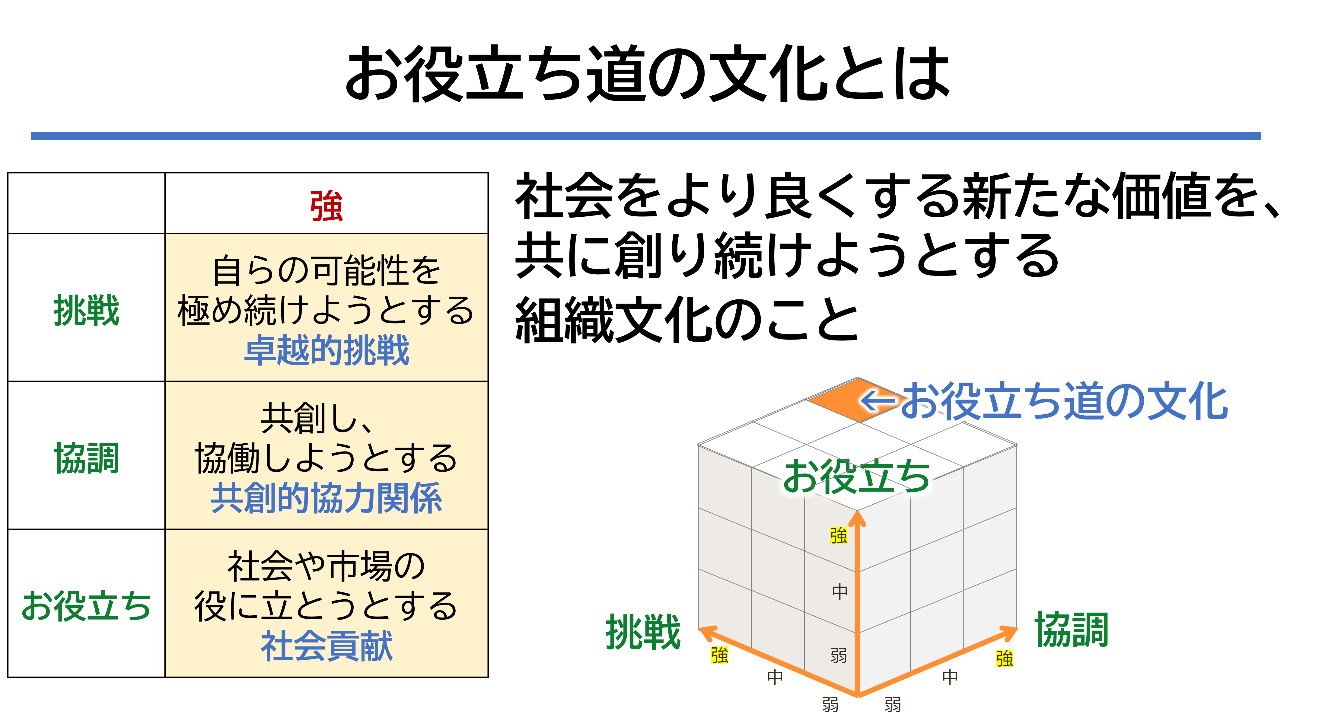 挑戦、協調、お役立ちの軸を、このシリーズでご紹介したマネジメントを通じて高めていきましょう。