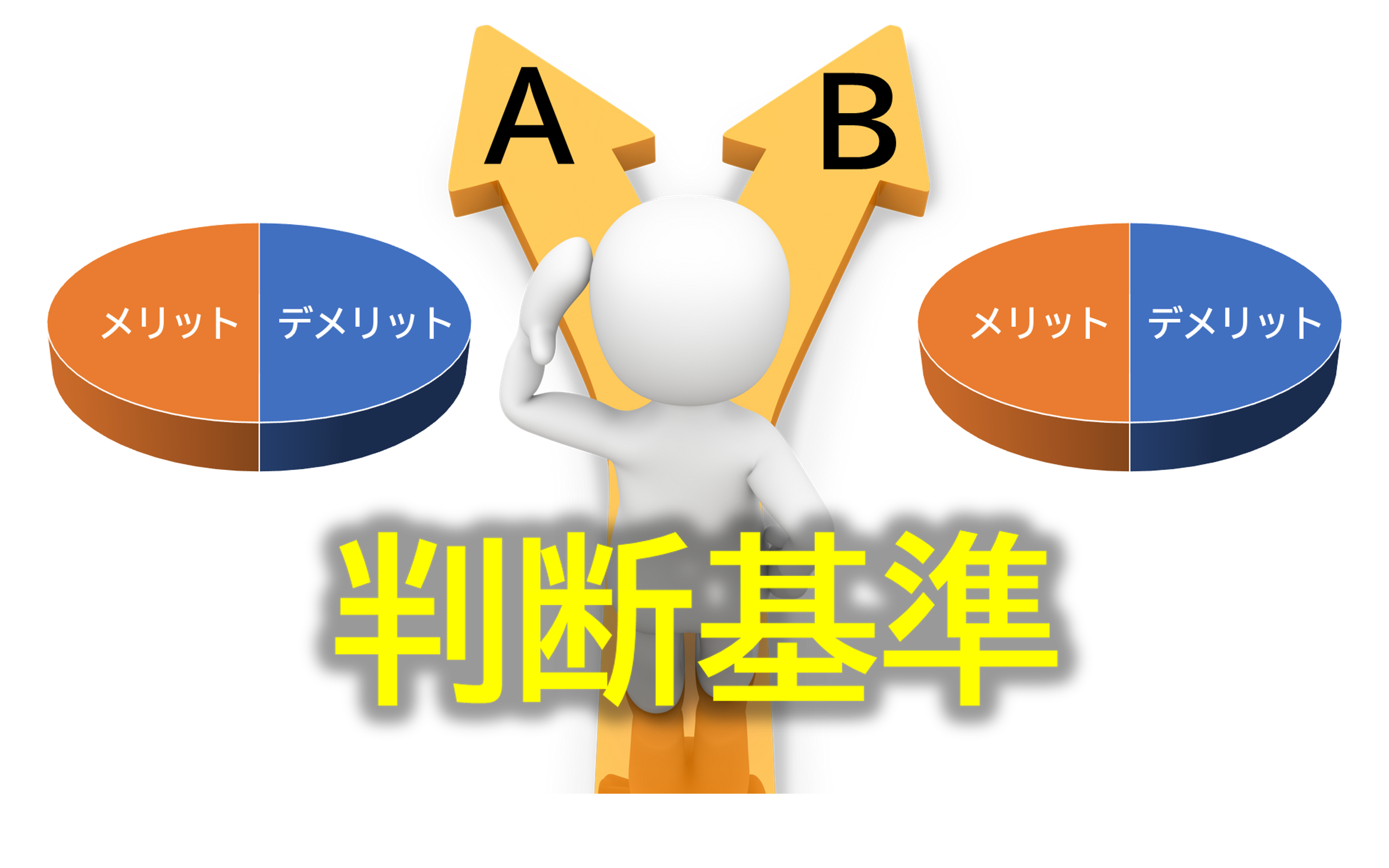このシリーズでは、経営トップとしてお役立ち道経営を目指し経営判断をするときに、AとBのどちらを選択してもメリットとデメリットの割合が同じくらいだと思ったら、「何を判断基準にすればよいのか」を考えていきましょう。