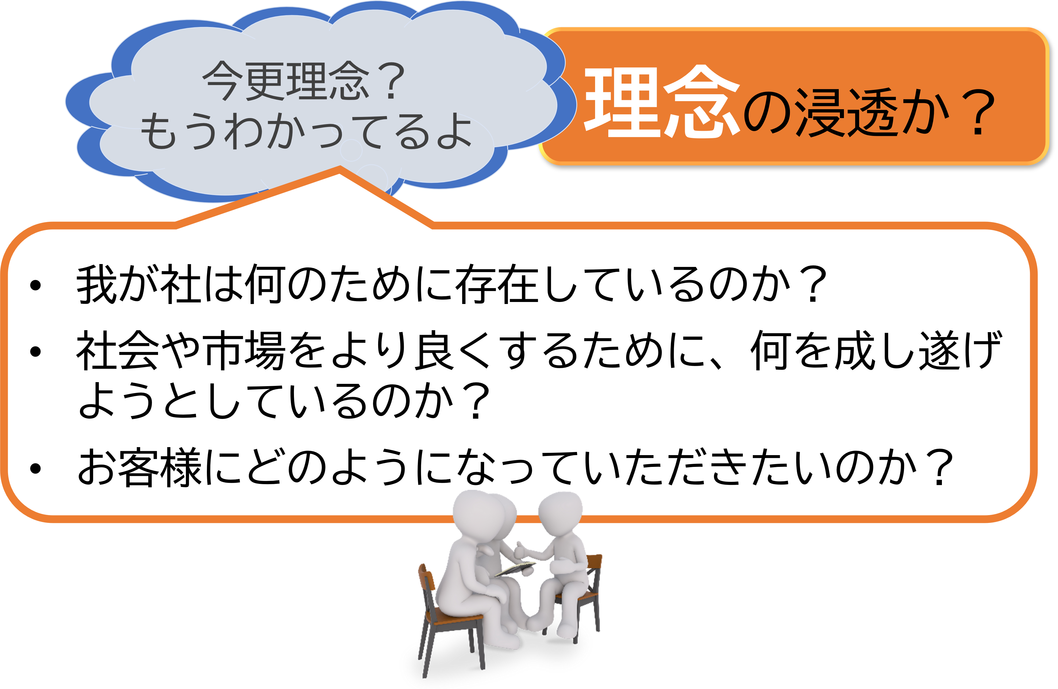 かといって、理念は創業以来言い続けてきていることです。今さら「理念をより深く理解しよう」と言っても、それが「起死回生の方向で今の業績に直結する」とは、誰も理解しないのではないかとも考えられました。