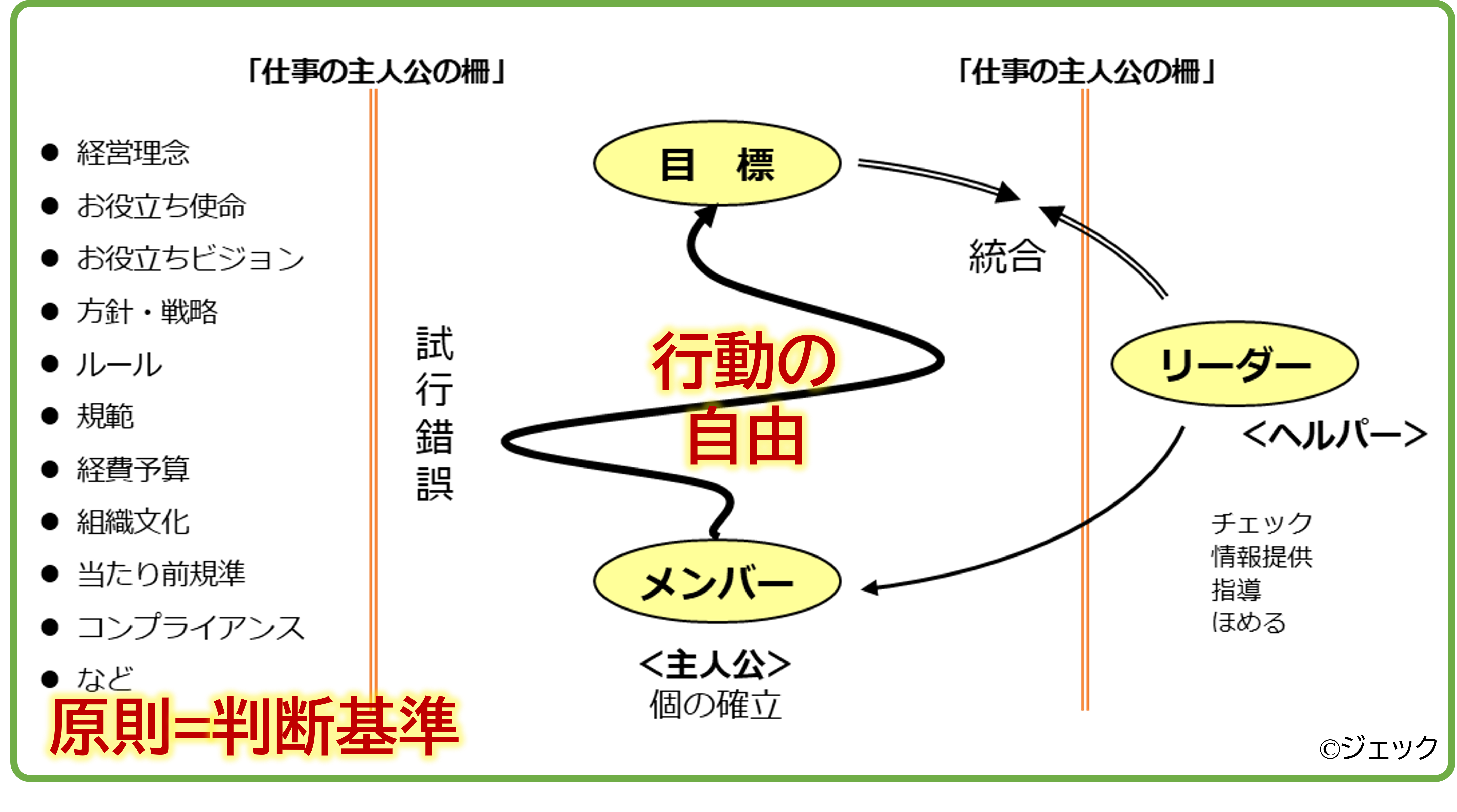 その時に、経営トップが心がけるのが「原則の一致・行動の自由」です。
